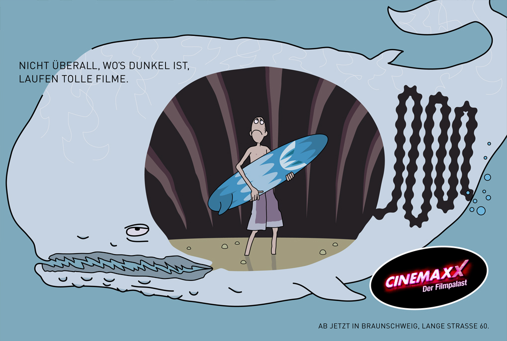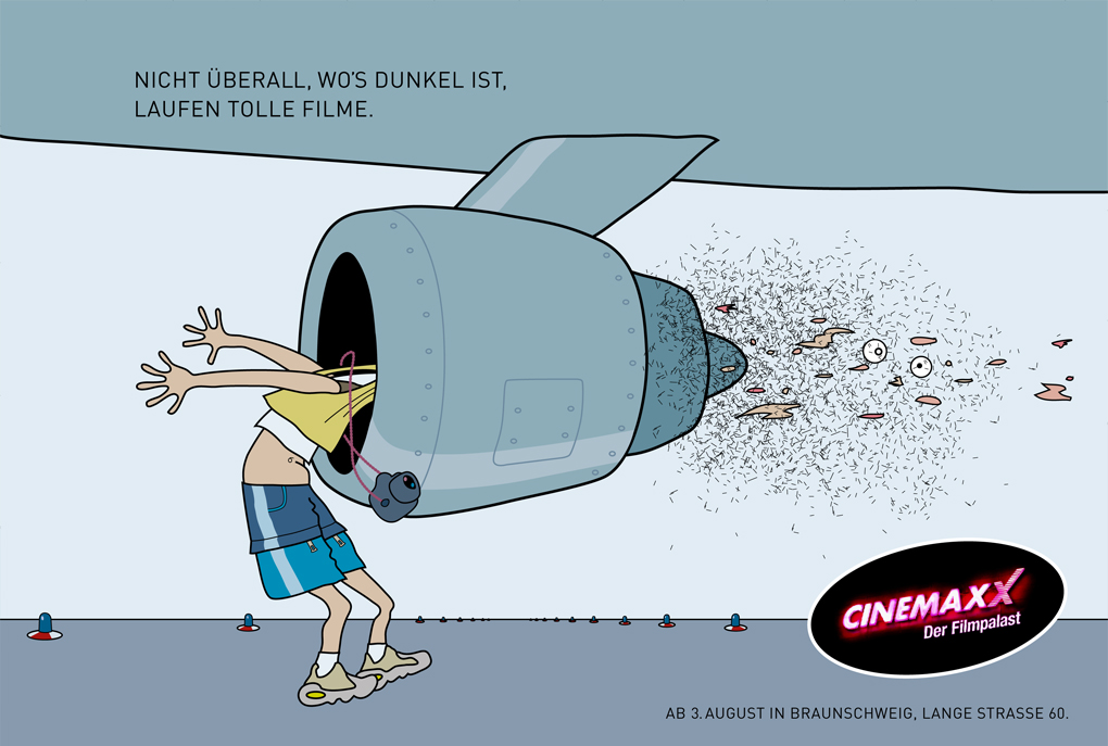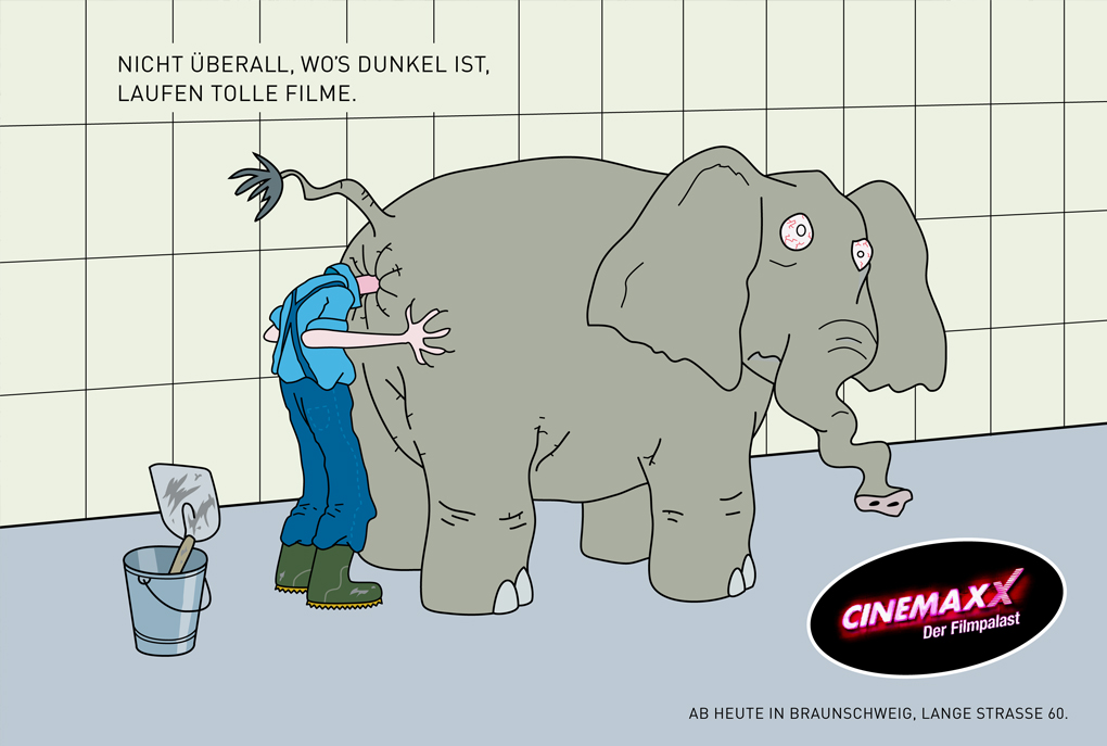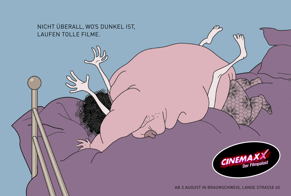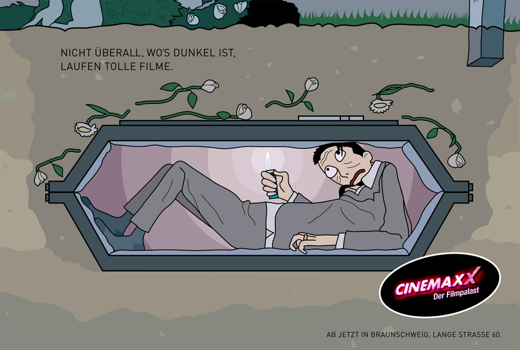 Nicht überall, wo's dunkel ist, laufen tolle Filme. Unter diesem Slogen entstanden Anzeigenmotive, die mehr Zuschauer in das Kino locken sollten.