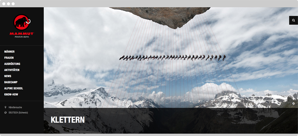 Anlässlich des 150 jährigen Jubiläums zur Erstbesteigung des Matterhorns entstandt ein beeindruckendes Keyvisual im Rahmen der Anzeigenkampagne. Dabei trugen Bergsteiger entlang einer Kette Stirnlampen am Kletterhelm. Ebenso kamen vorinstallierte Lampen zum Einsatz.