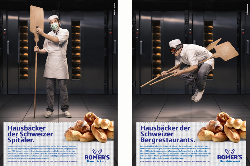 Das Key Visual kommuniziert auf authentische Art und Weise den Auftritt des Hausbäckers. Dieser zeigt sich in den verschiedenen Motiven erstaunlich anpassungsfähig an die verschiedenen Branchen und demonstriert so die Nähe zu seinen Kunden.