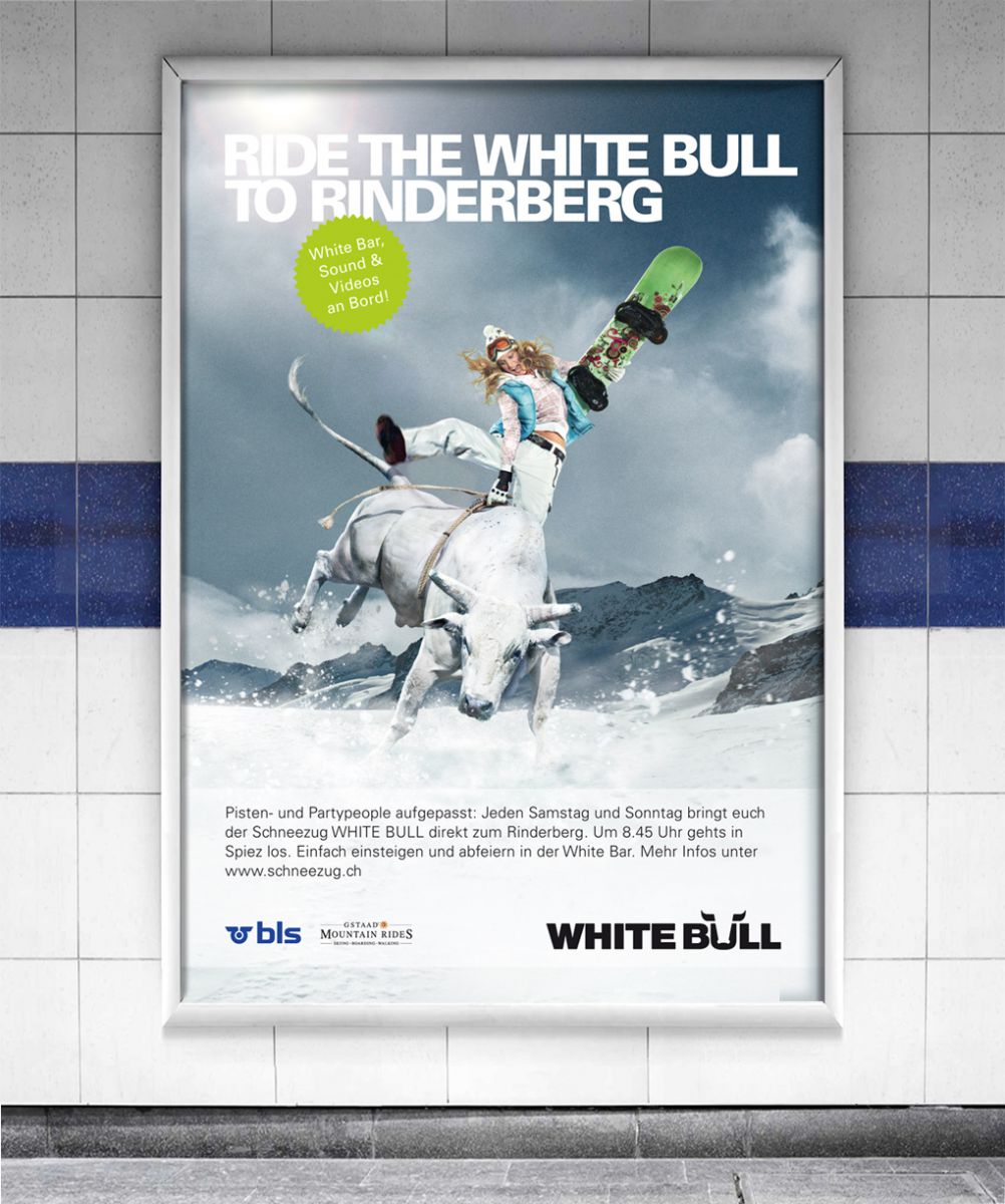 Mit dem Skizug White Bull kommen die Wintersportler schnell und bequem ans Ziel und haben während der Fahrt jede Menge Spass im Barwagen.